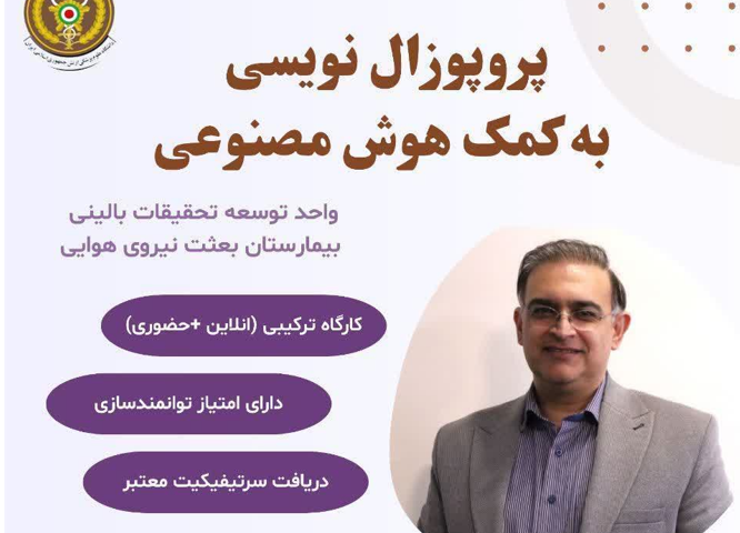 به کارگاه دو ساعته «پروپوزال نویسی به کمک هوش مصنوعی» در روز یک شنبه 27 آبان 1404 از ساعت 8 تا 10 خوش آمدید.