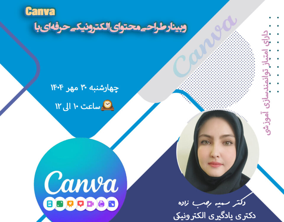 کارگاه «تولید محتوای حرفهای آکادمیک با Canva» برای اساتید و پژوهشگران است که در آن با استفاده از ابزارها و قالبهای Canva، طراحی سریع و استاندارد اسلاید، پوستر، اینفوگرافیک و سایر محتوای آموزشی و پژوهشی را میآموزید.